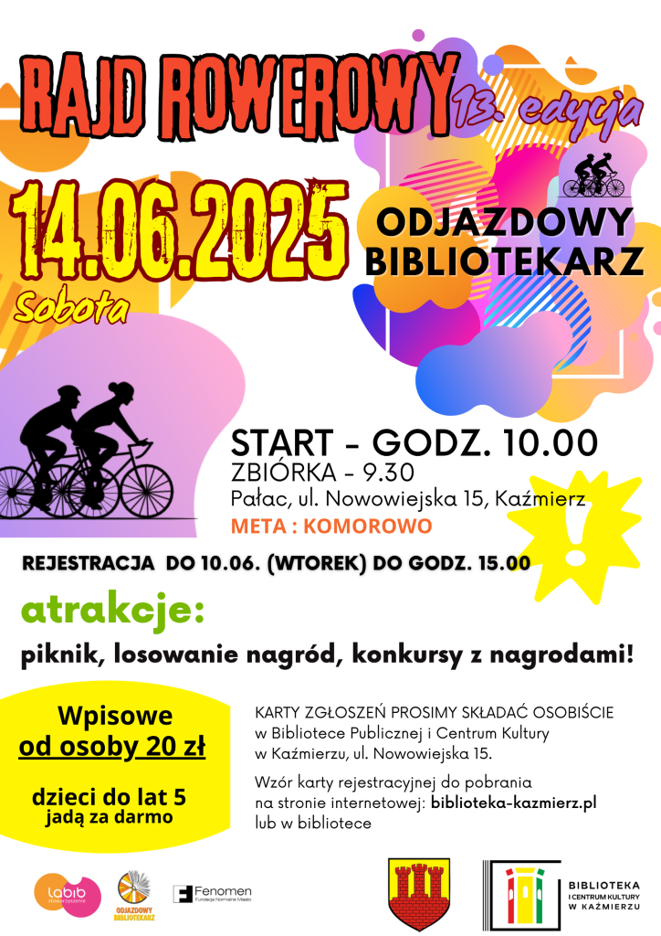 Zapraszamy do udziału w 13. edycji Rajdu Rowerowego, który odbędzie się w sobotę, 14 czerwca 2025 roku.